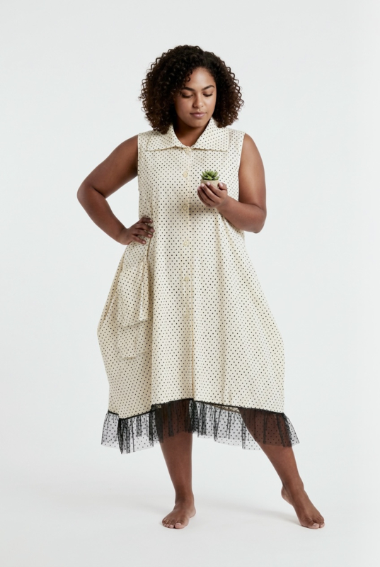 AKH viscose A-lijn jurk apart stretch/zwart/wit
