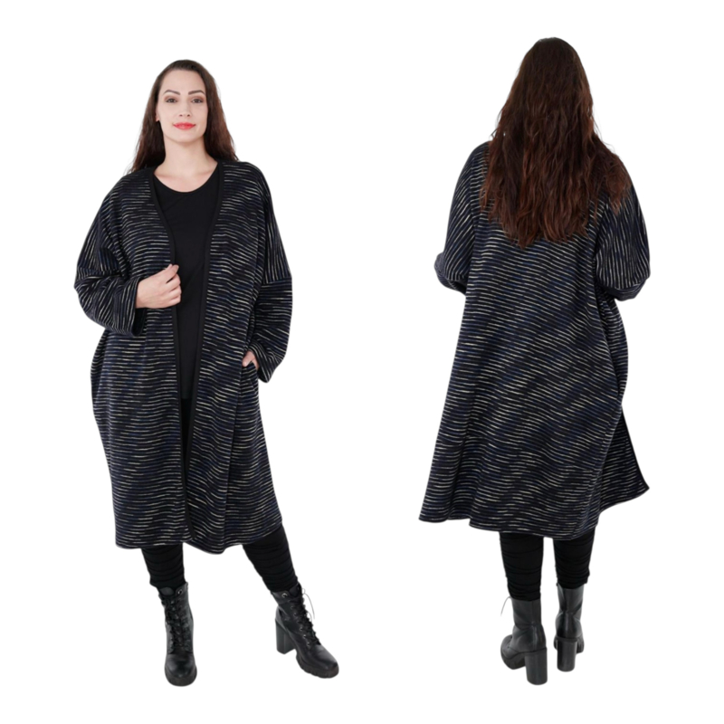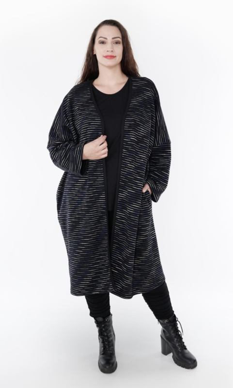 AKH oversized katoen mix jersey A-lijn blazer/vest apart stretch