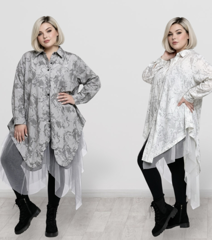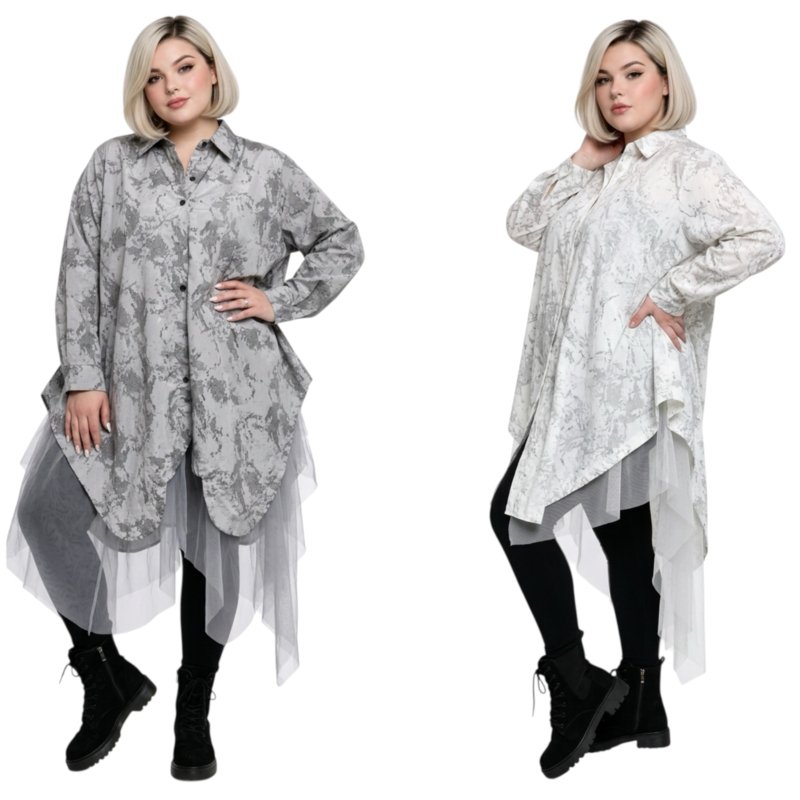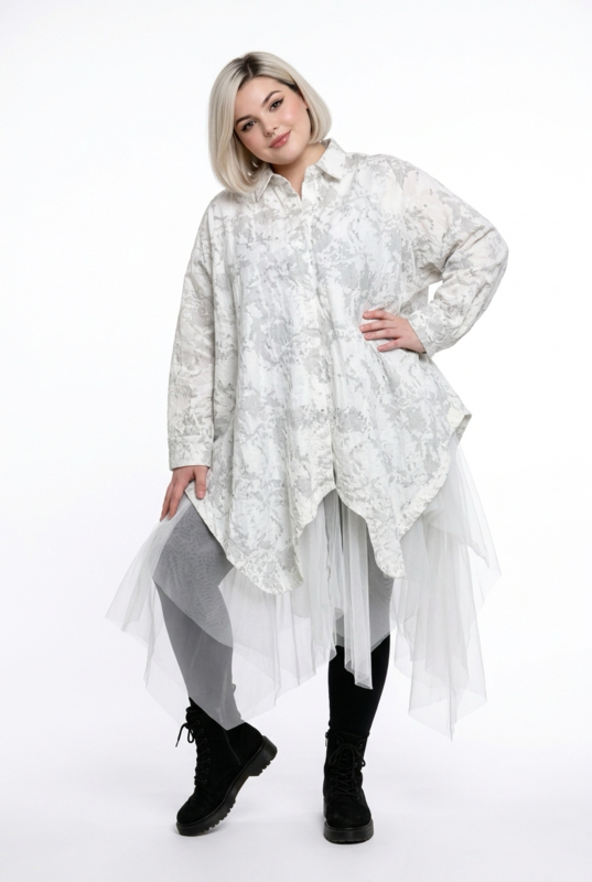 FlyOut oversized hemd/tuniek met inzet van tule stof/in meerdere kleuren
