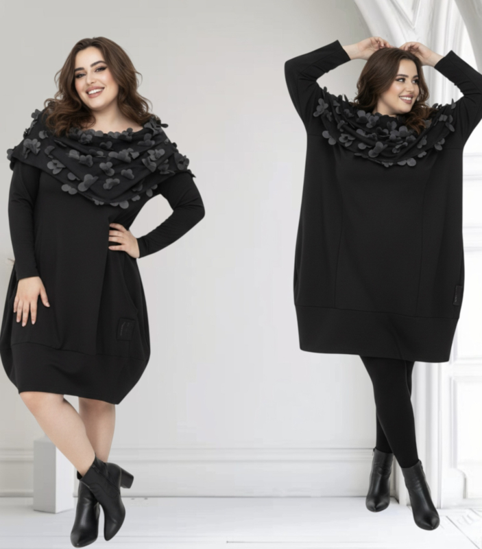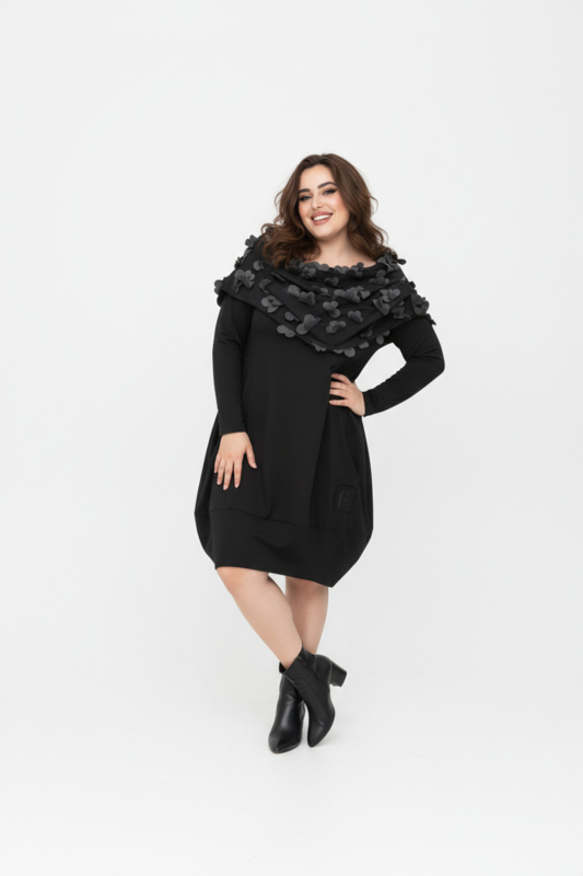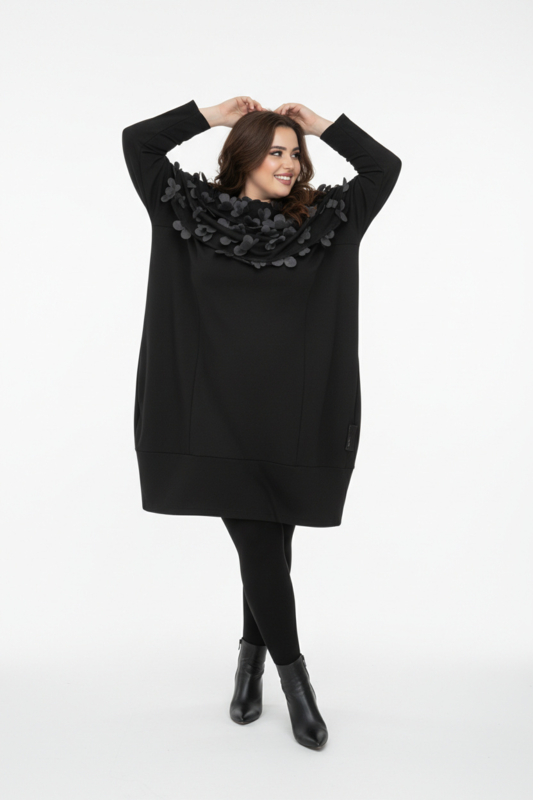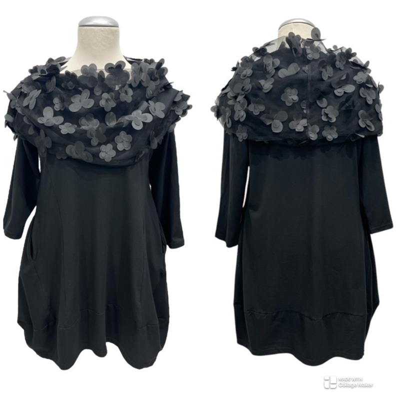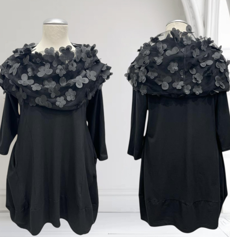 Vincenzo Allocca oversized katoen A-lijn tuniek met tule bloemenkraag apart zwart