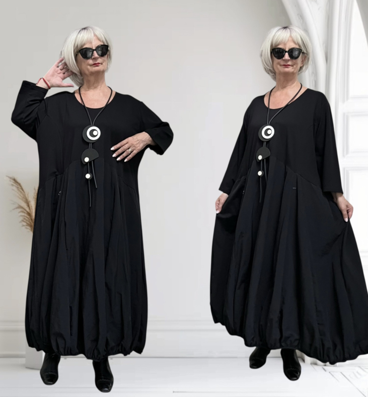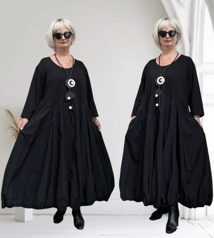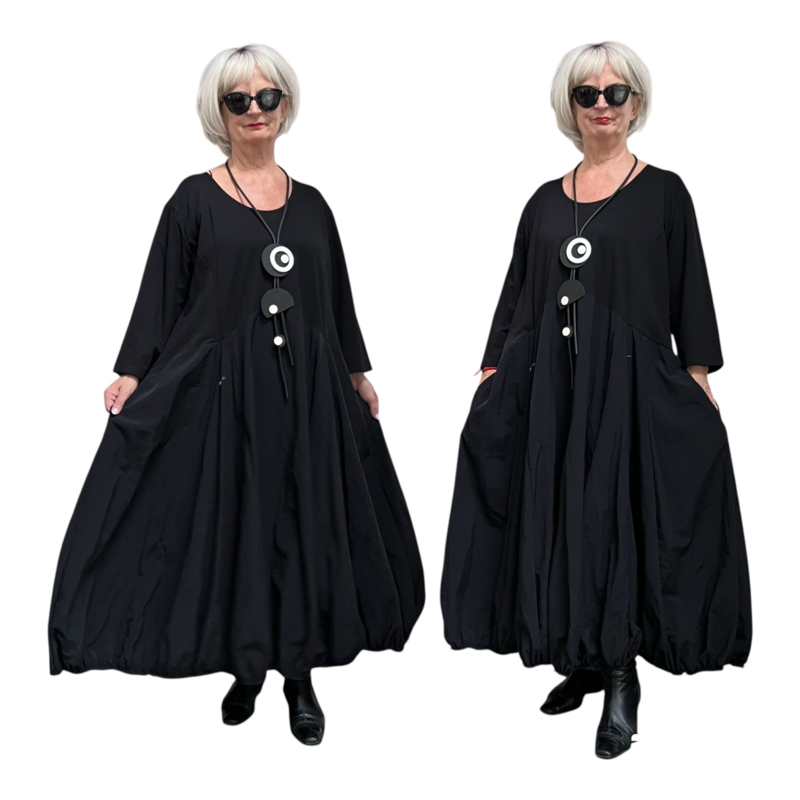 Vincenzo Allocca oversized katoen A-lijn jurk met inzet van taft /aparte/stretch/zwart