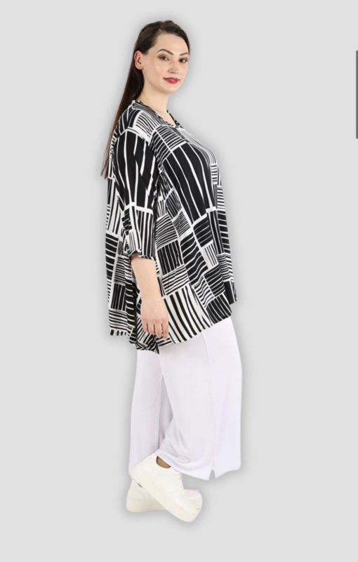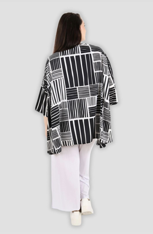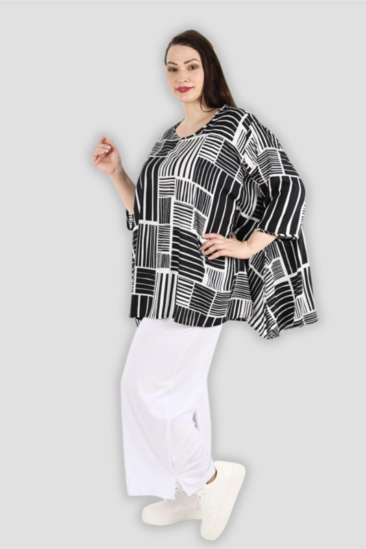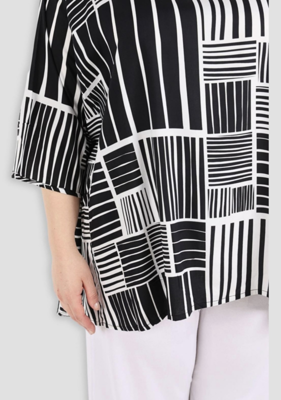 AKH oversized viscose A-lijn top/tuniek zwart/wit apart