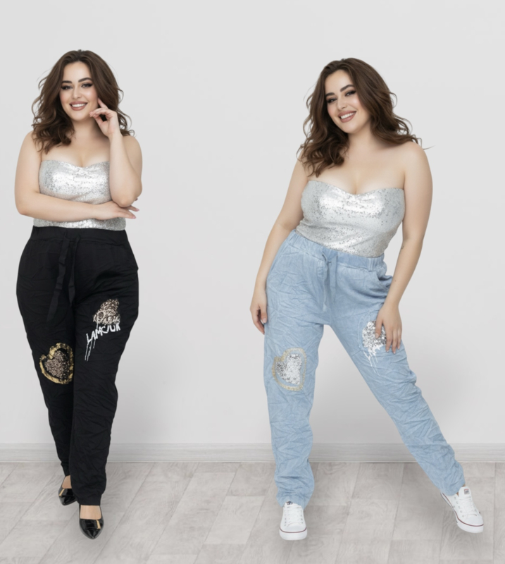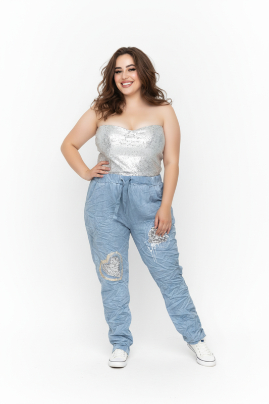 ITALIA katoen jeans broek met hart/apart/ veel stretch/in meerdere kleuren