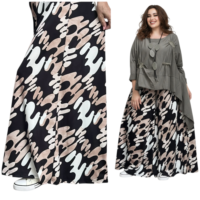 ITALY Mode jersey viscose wijde broek apart /zeer rekbaar/zwart/wit/beige
