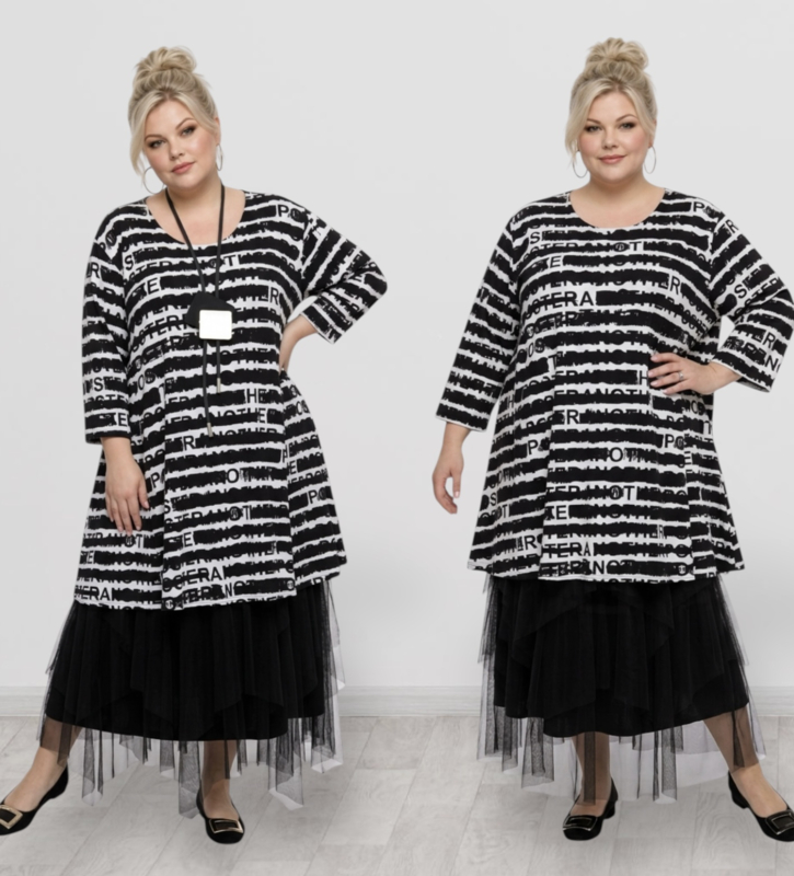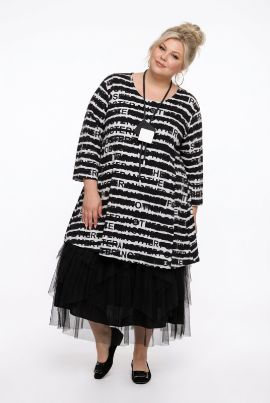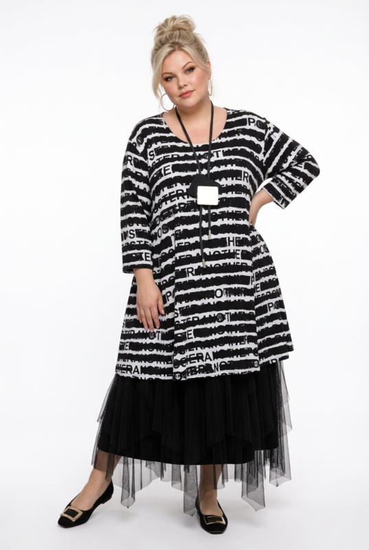 New Jersey oversized viscose A-lijn jurk/tuniek / stretch/zwart/wit