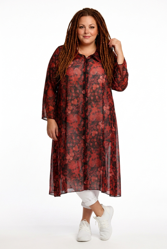 AKH oversized A-lijn chiffon tuniek/hemd/jurk met ritssluiting