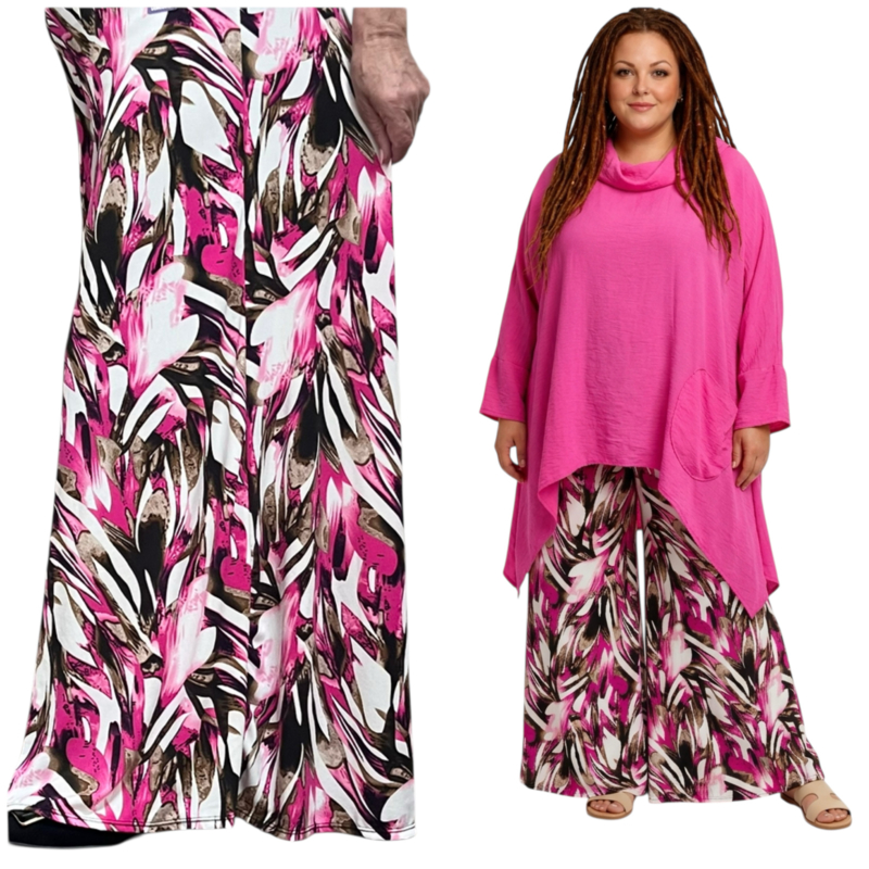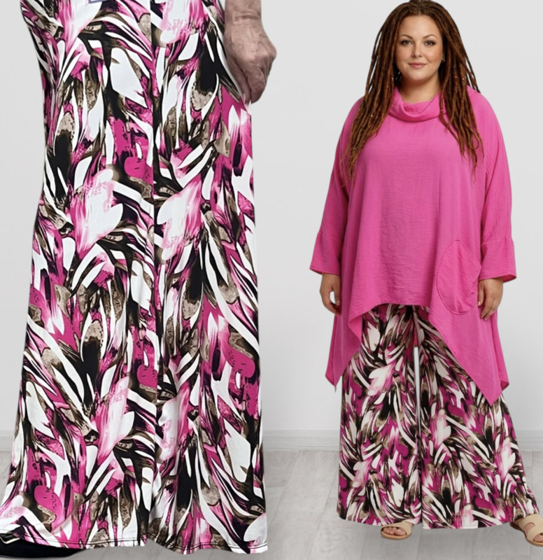 ITALY Mode jersey viscose wijde broek apart /zeer rekbaar/zwart/wit/fuchsia