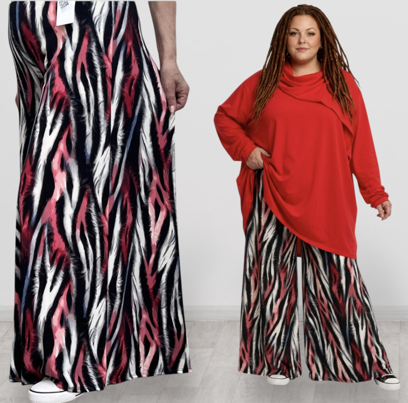 ITALY Mode jersey viscose wijde broek apart /zeer rekbaar/zwart/grijs/rood