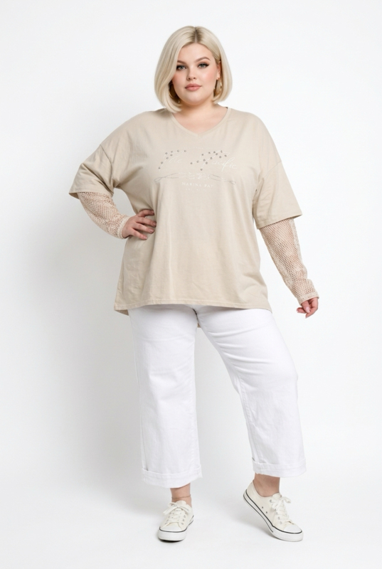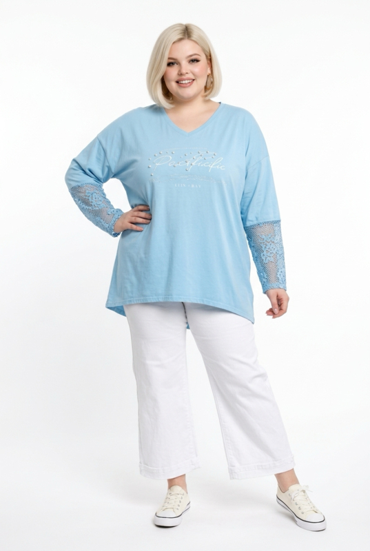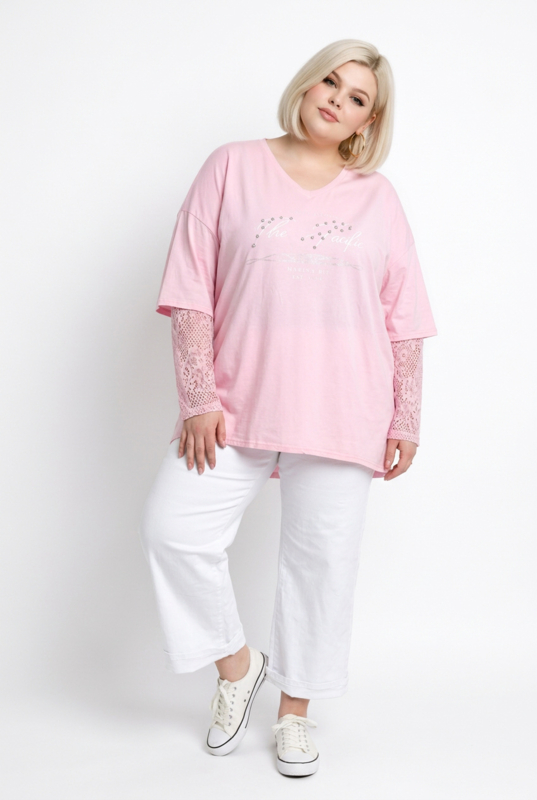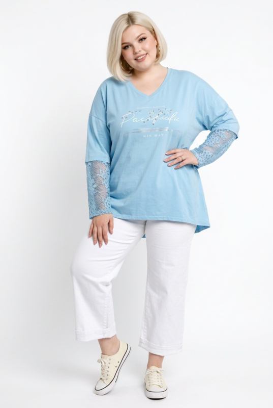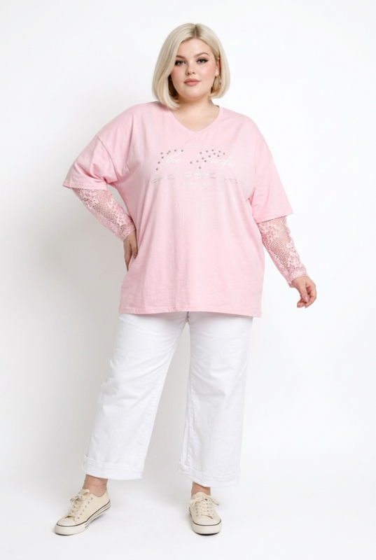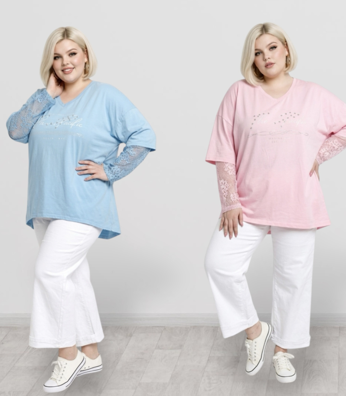 ITALIA oversized katoen top met kanten mouwen stretch /in meerdere kleuren