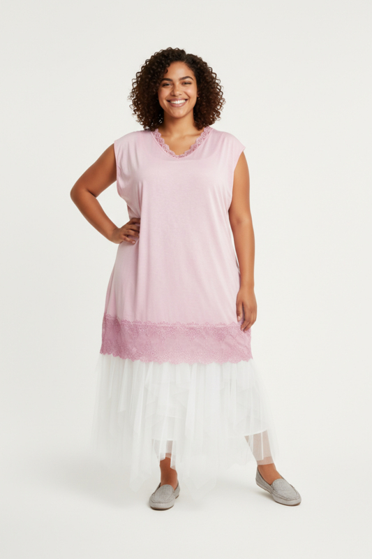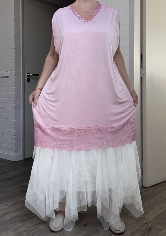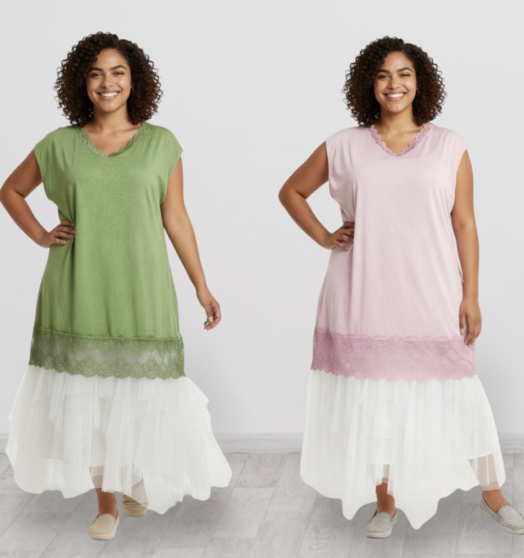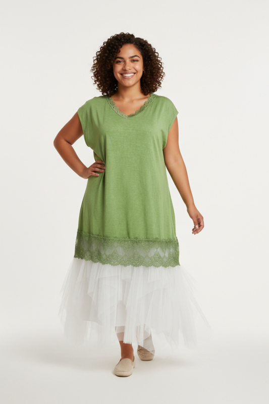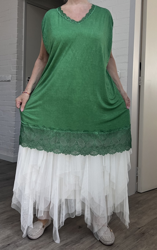 ITALIA MODA de modieuze kleuring viscose A-lijn tuniek met KANT stretch apart/in meerdere kleuren