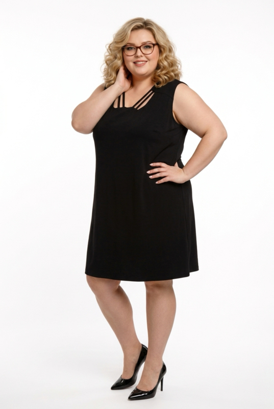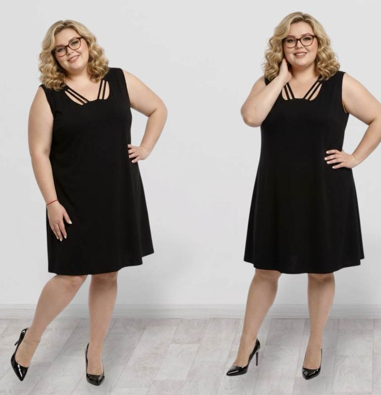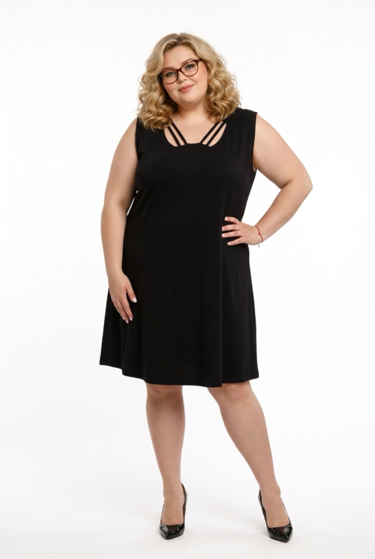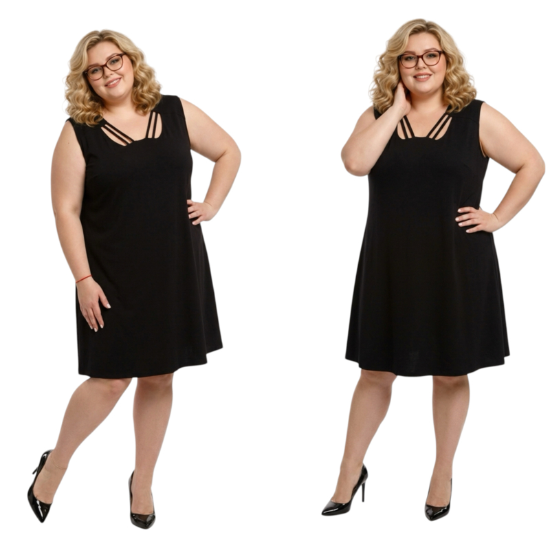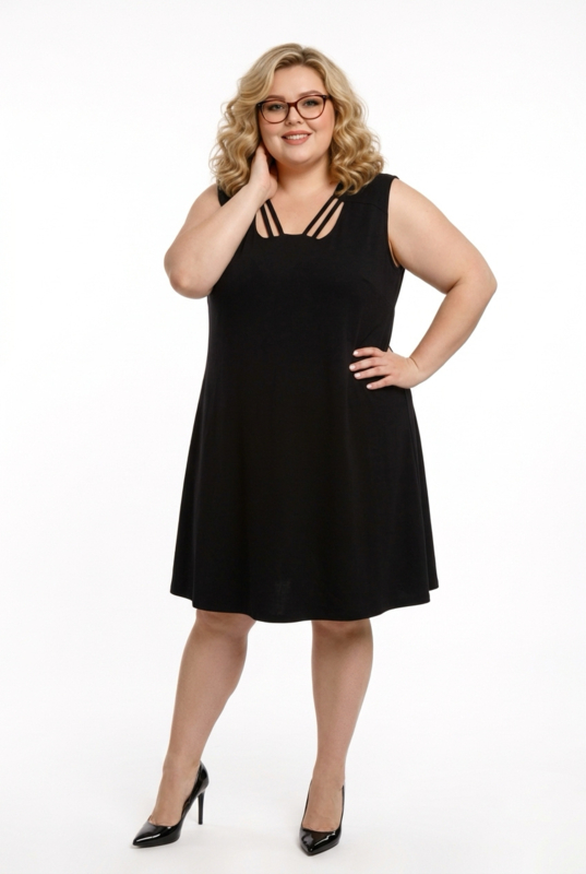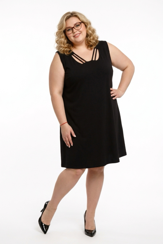 New Jersey viscose A-lijn jurk met aparte decolleté/ stretch/zwart