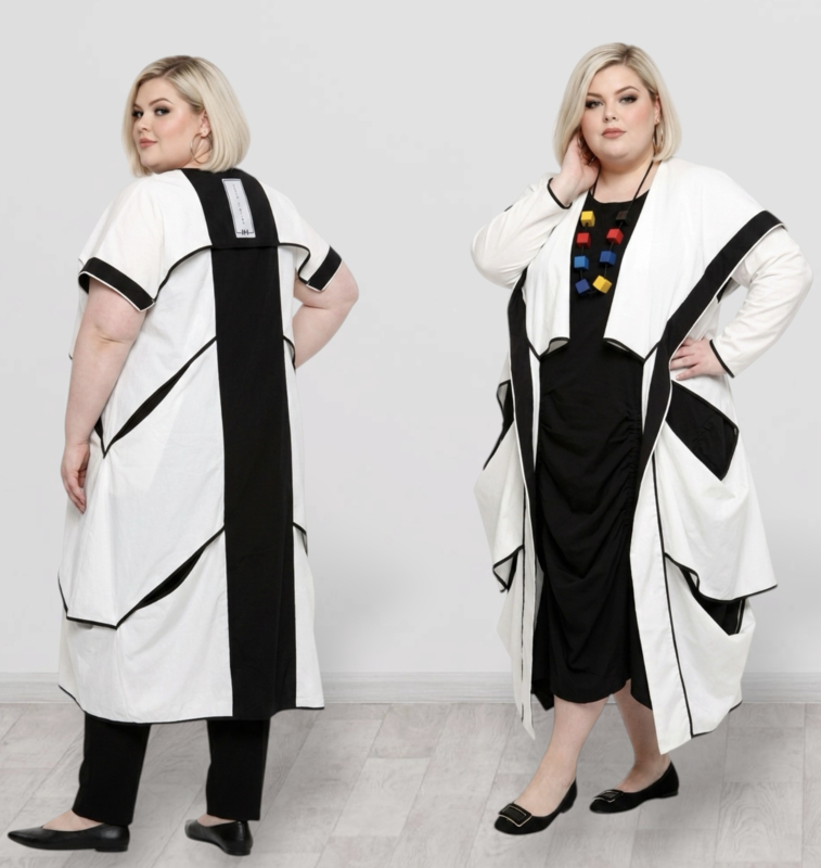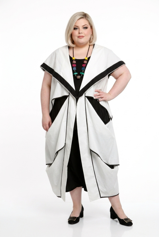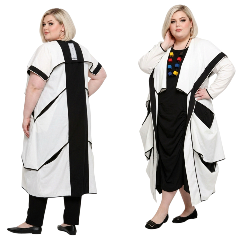 H-4 oversized katoen mix vest/blazer apart wit/zwart