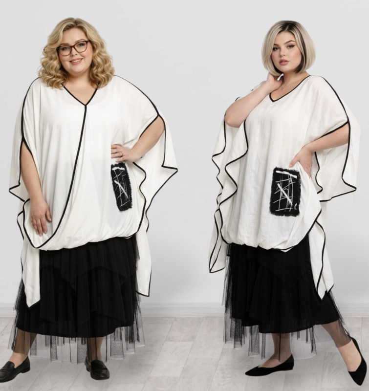 CN-G oversized viscose tuniek wit/zwart