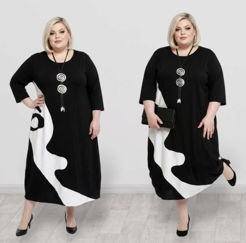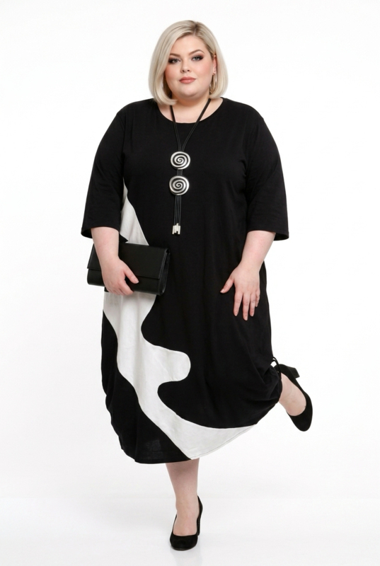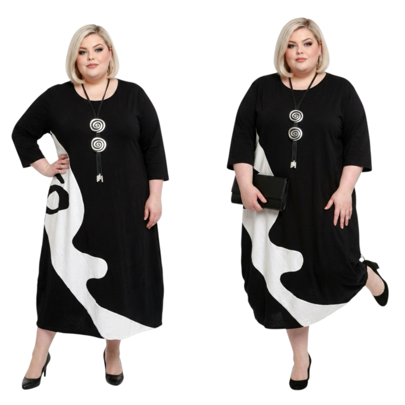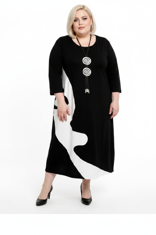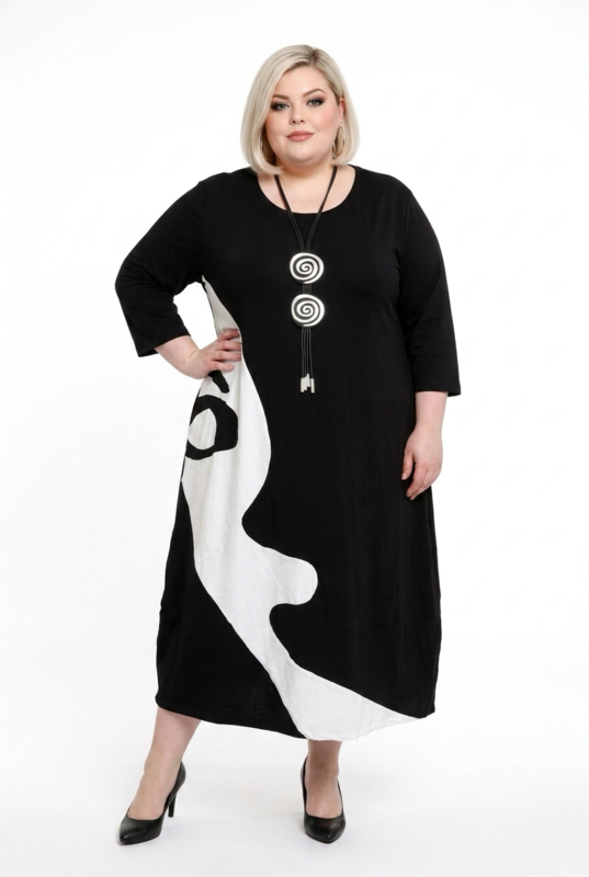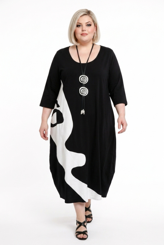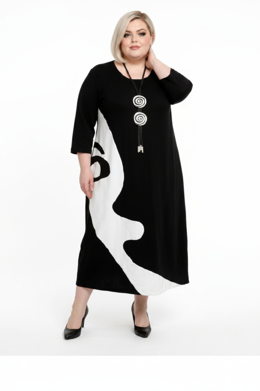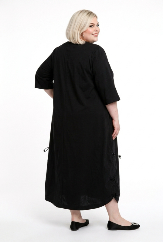 KEKOO design katoen A-lijn jurk zwart/lichtgrijs stretch