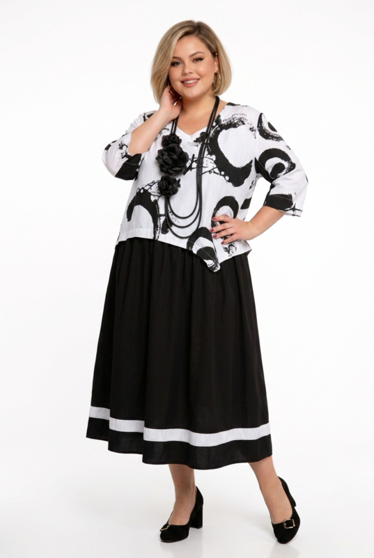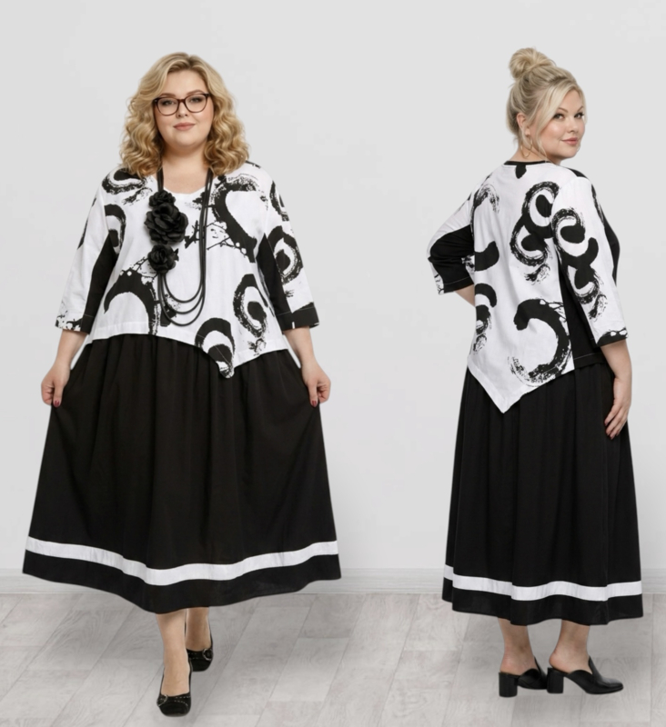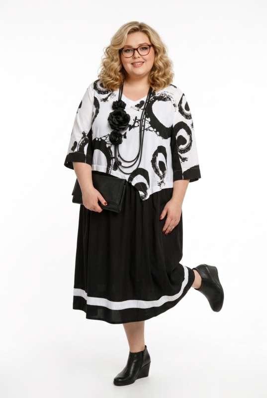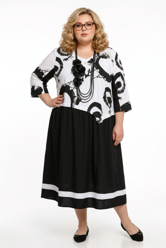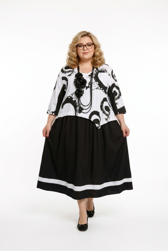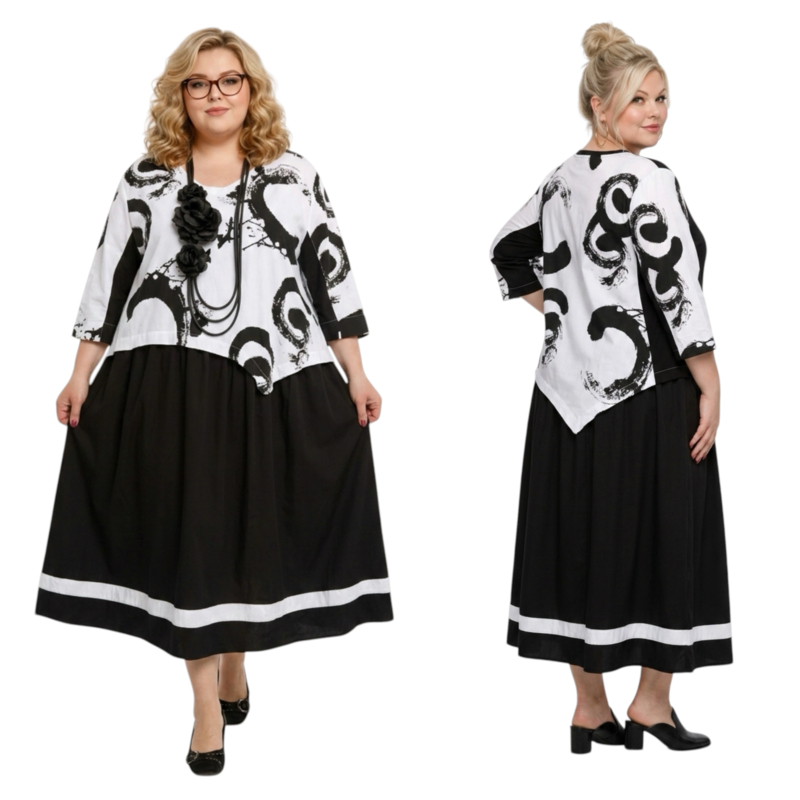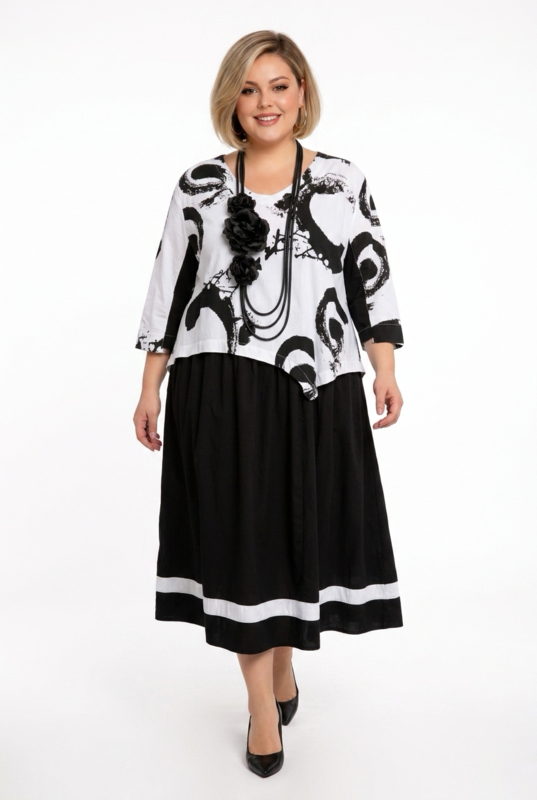 SINNE design.. A-lijn viscose jurk zwart/wit