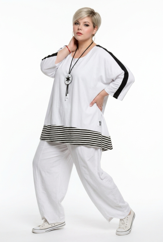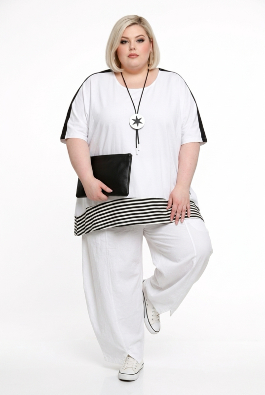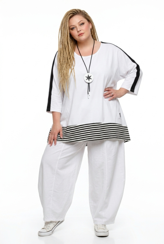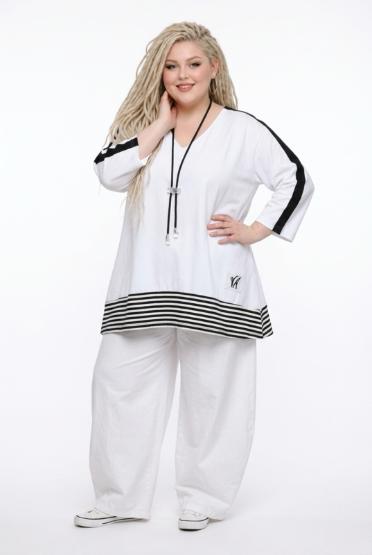 Vincenzo Allocca oversized viscose A-lijn tumiek wit/zwart stretch