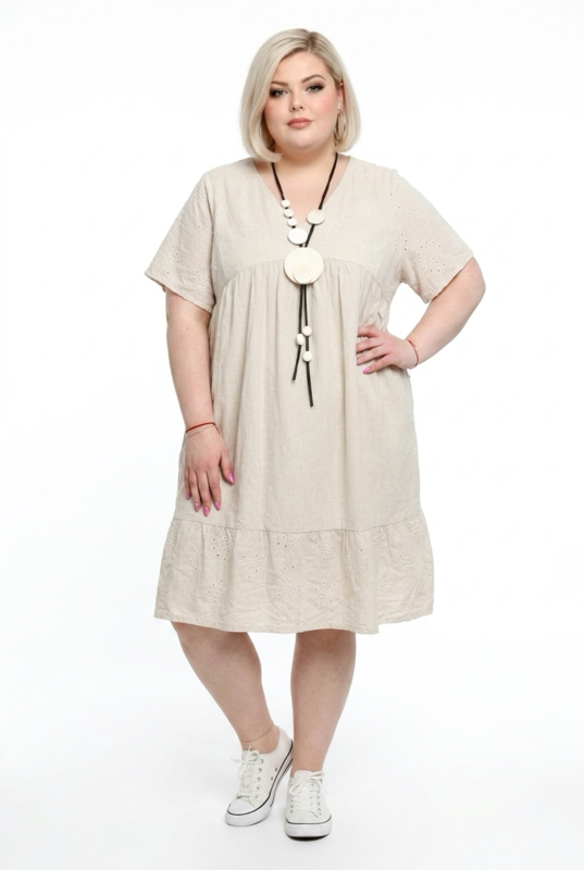 ITALIA MODA geborduurd linnen/viscose A-lijn jurk