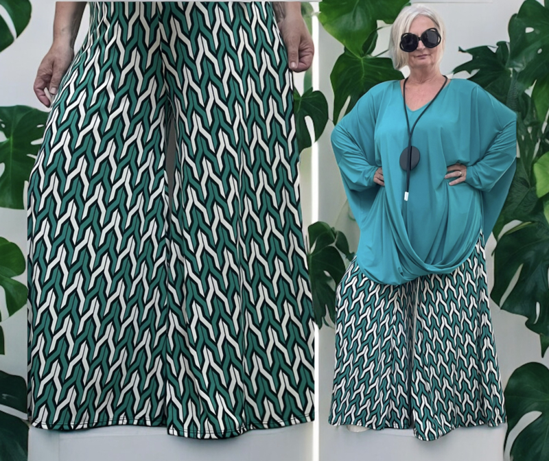 ITALY Mode jersey viscose wijde broek apart /zeer rekbaar