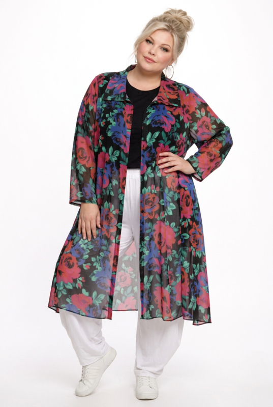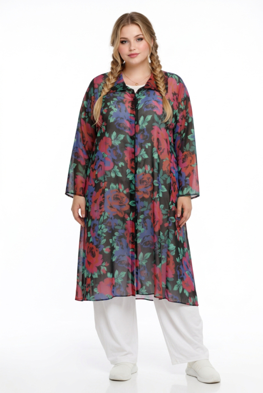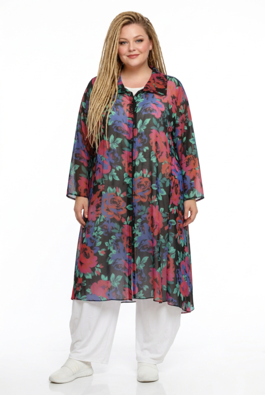 AKH oversized chique chiffon A-lijn hemd/tuniek met ritssluiting apart