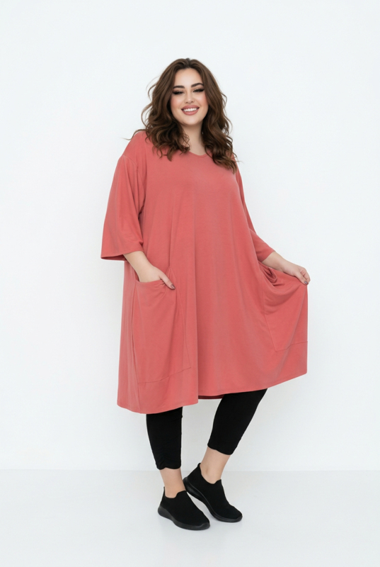 AKH oversized viscose mix A-lijn tuniek apart stretch