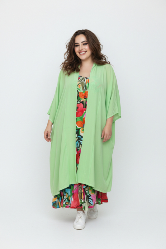 afmeting : borstomvang: 205 cm,taille : 230 cm, lengte vanaf de schouder : +/-120 cm.
