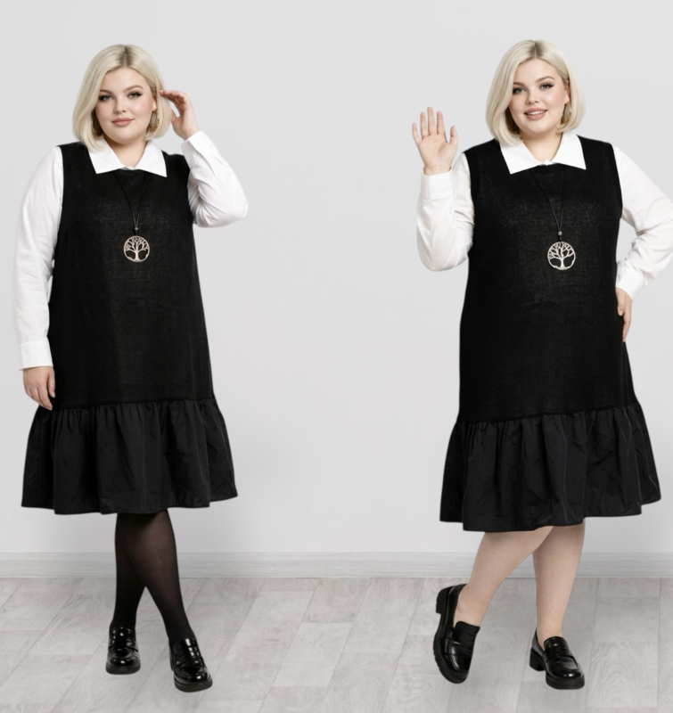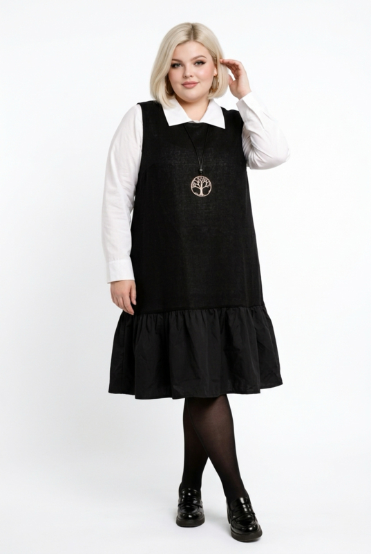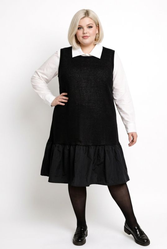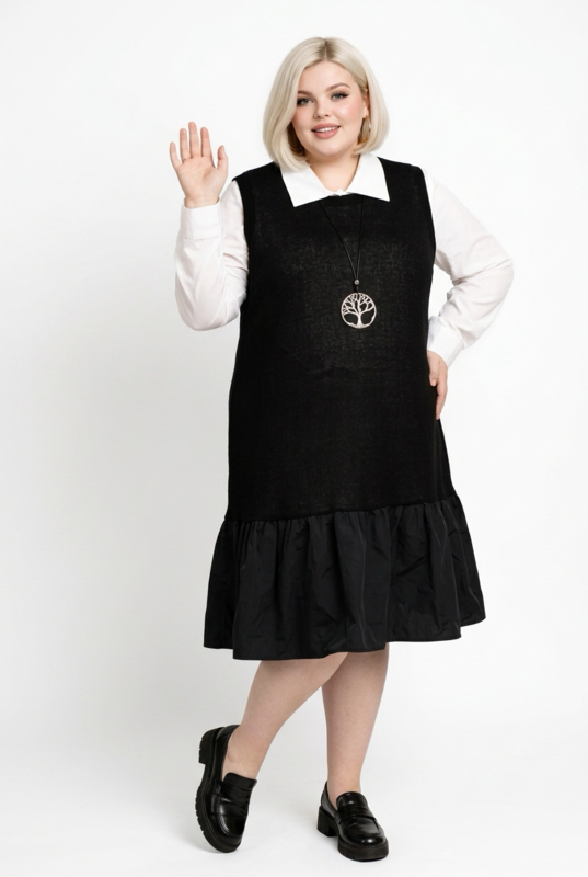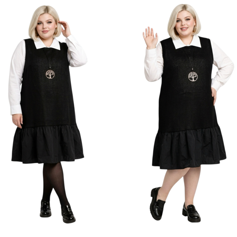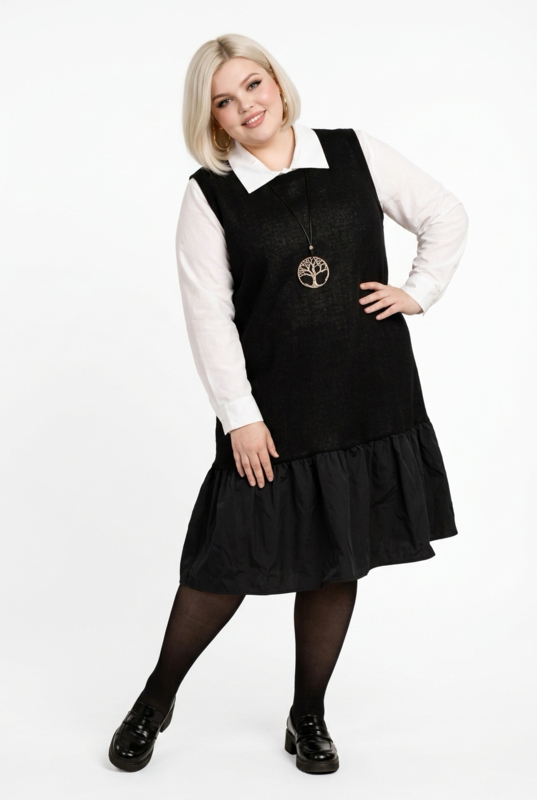 AKH oversized mouwloze gebreide katoen A-lijn jurk met inzet van taft /apart/zwart