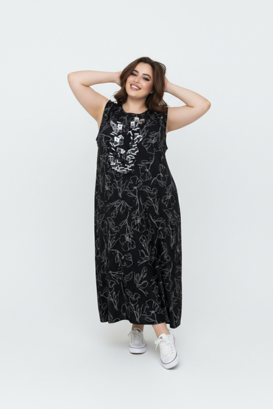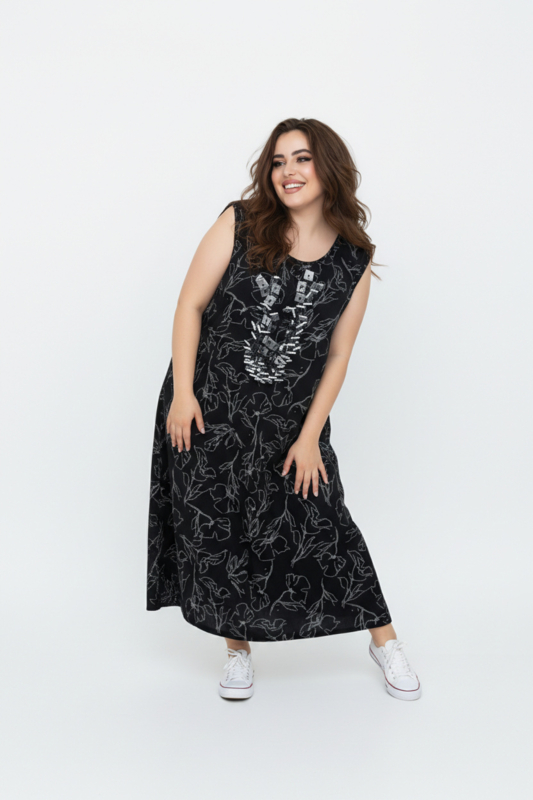 AKH oversized katoen/viscose A-lijn jurk met zakken /apart/zwart/wit