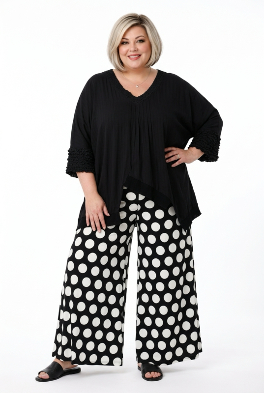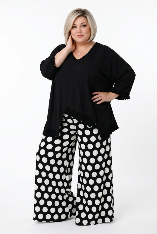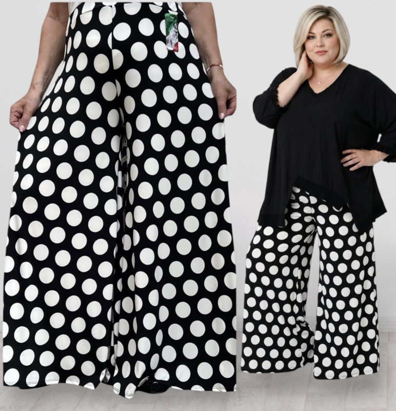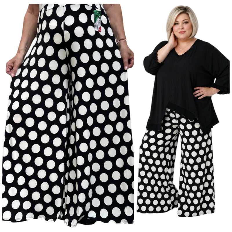 ITALY Mode jersey viscose wijde broek apart /zeer rekbaar/zwart/wit
