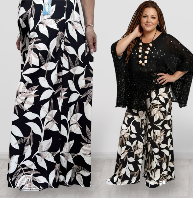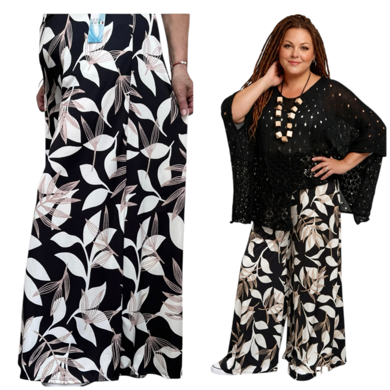 ITALY Mode jersey viscose wijde broek apart /zeer rekbaar/zwart/wit