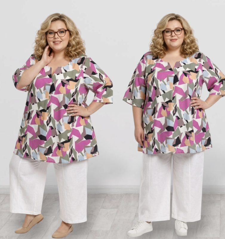 ITALIA MODA oversized mousseline katoen A-lijn tuniekhet model is wijd,