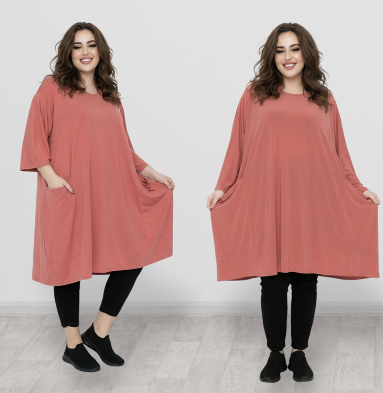 AKH oversized viscose tricot A-lijn tuniek apart stretchhet ruimvallende model,