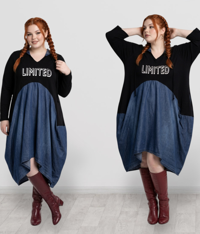 Vincenzo Allocca katoen/tencel A-lijn jurk/ stretchhet ruimvallende model,